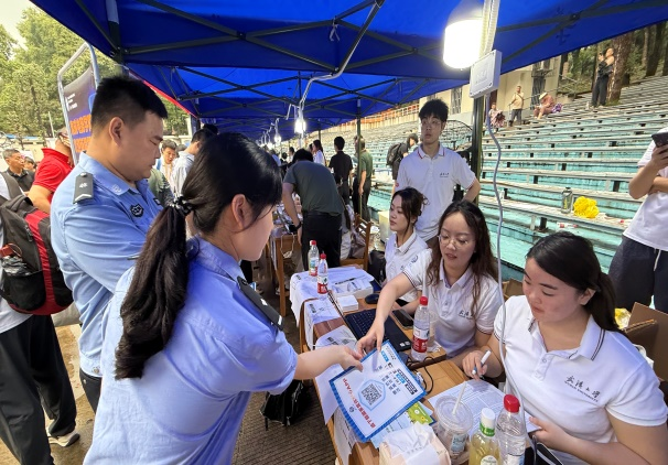 荊楚網(wǎng)(湖北日報網(wǎng))訊(通訊員 方茜)9月1日,武漢大學迎來新生報到高峰。為筑牢校園安全屏障,武昌區(qū)珞珈山街道平安建設辦聯(lián)合轄區(qū)派出所、武漢大學保衛(wèi)部,以“青春無毒·反詐同行·安全護航”為主題,在梅園操場、工學部體育館等新生集中區(qū)域開展系列安全宣傳活動,為3000余名新生及家長送上“安全第一課”。
