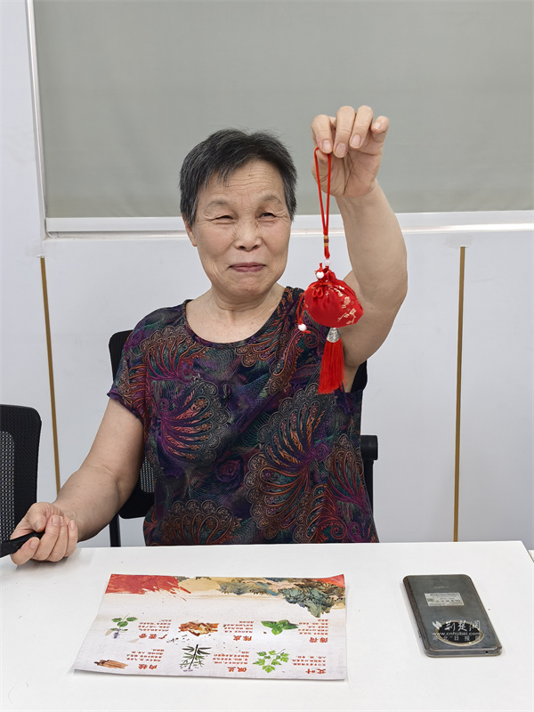 手工香囊制作區(qū),居民們精心調(diào)配艾草、薄荷、丁香等中藥材,親手制作出一個(gè)個(gè)藥香清雅、造型精致的養(yǎng)生香囊,既體驗(yàn)了動(dòng)手樂趣,也學(xué)習(xí)了中藥養(yǎng)生知識(shí)。