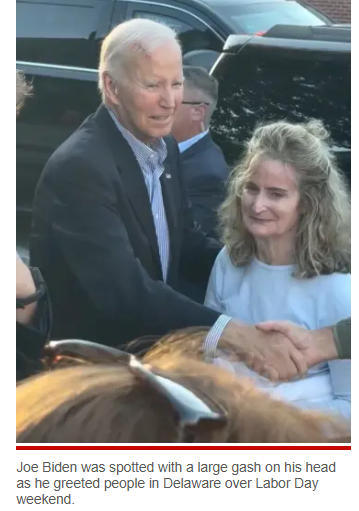 報道稱,社交媒體上流傳的一段畫面顯示,現年82歲的拜登顯得虛弱,額頭有一道明顯的紅色傷口,部分被白發(fā)遮蓋。
