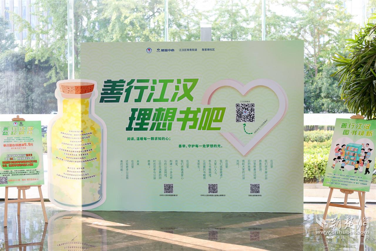 值得一提的是,場外一樓大廳同步啟動了“善行江漢·理想書吧”慈善空間。該慈善空間,是在民政部門指導下,由區(qū)慈善會、常青街道、湖北首地房地產(chǎn)開發(fā)有限公司聯(lián)合打造的江漢區(qū)首個樓宇慈善空間,搭建起了政企社聯(lián)動助力慈善事業(yè)發(fā)展的互動交流公益平臺。