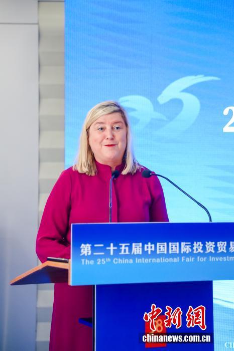 倫敦發(fā)展促進署經(jīng)貿(mào)科創(chuàng)產(chǎn)業(yè)董事總經(jīng)理珍妮特·科伊爾(Janet Coyle)9月8日在廈門舉行的2025中英健康創(chuàng)新平臺投資促進活動致辭。第二十五屆中國國際投資貿(mào)易洽談會組委會 供圖