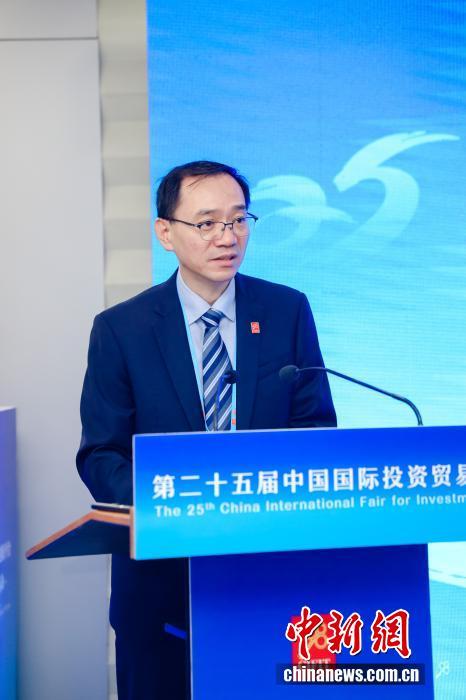 中國商務(wù)部投資促進事務(wù)局局長劉民強9月8日在廈門舉行的2025中英健康創(chuàng)新平臺投資促進活動致辭。第二十五屆中國國際投資貿(mào)易洽談會組委會 供圖