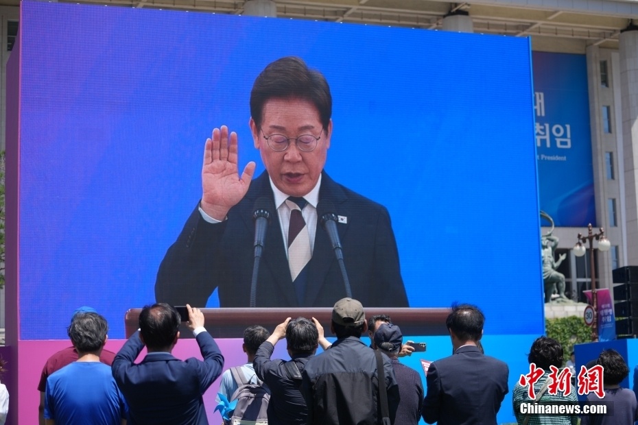 當(dāng)?shù)貢r(shí)間6月4日,民眾在韓國首爾汝矣島國會(huì)廣場通過大屏幕觀看總統(tǒng)李在明就職儀式。中新社記者 劉旭 攝