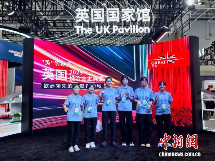 2025年9月8日至11日,第二十五屆中國國際投資貿(mào)易洽談會(huì)在福建廈門舉行,吸引120多個(gè)國家和地區(qū)前來參展,圖為志愿者在主賓國英國國家館前合影留念。記者 林卓瑋 攝