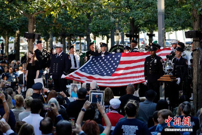 當(dāng)?shù)貢r(shí)間9月11日,“9·11”事件24周年紀(jì)念活動(dòng)在紐約世貿(mào)中心遺址舉行?!≈行律缬浾?廖攀 攝