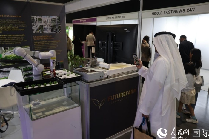 在展覽現(xiàn)場(chǎng),多家中國(guó)企業(yè)展示的新產(chǎn)品和新技術(shù)受到中東客商歡迎。一家位于深圳的照明企業(yè)研發(fā)的LED燈光系統(tǒng),能夠通過(guò)調(diào)整光譜組合和光照強(qiáng)度,優(yōu)化農(nóng)作物的產(chǎn)量和質(zhì)量;另一家位于中國(guó)香港的企業(yè)帶來(lái)的全自動(dòng)移栽和播種機(jī)械臂,能夠有效提高垂直農(nóng)場(chǎng)耕作效率,將智慧農(nóng)業(yè)里面引入其中?!爸袊?guó)在垂直農(nóng)業(yè)領(lǐng)域技術(shù)優(yōu)勢(shì)明顯,我們希望與中國(guó)企業(yè)開展更多合作?!卑⒙?lián)酋無(wú)土栽培農(nóng)場(chǎng)經(jīng)理阿姆賈德·奧馬爾對(duì)記者說(shuō)。