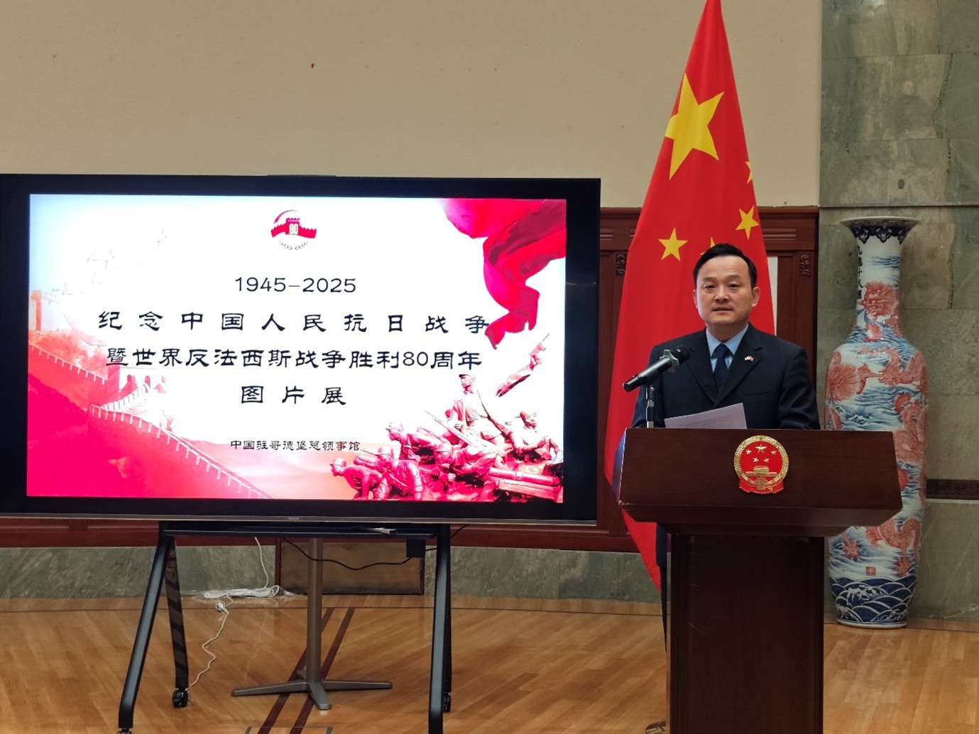 人民網(wǎng)斯德哥爾摩9月12日電 (記者殷淼)9月12日,中國(guó)駐哥德堡總領(lǐng)館隆重舉辦紀(jì)念中國(guó)人民抗日戰(zhàn)爭(zhēng)暨世界反法西斯戰(zhàn)爭(zhēng)勝利80周年圖片展和招待會(huì)。領(lǐng)區(qū)僑胞、留學(xué)生和社會(huì)各界人士300余人出席,中國(guó)駐哥德堡總領(lǐng)事楊培棟現(xiàn)場(chǎng)致辭。