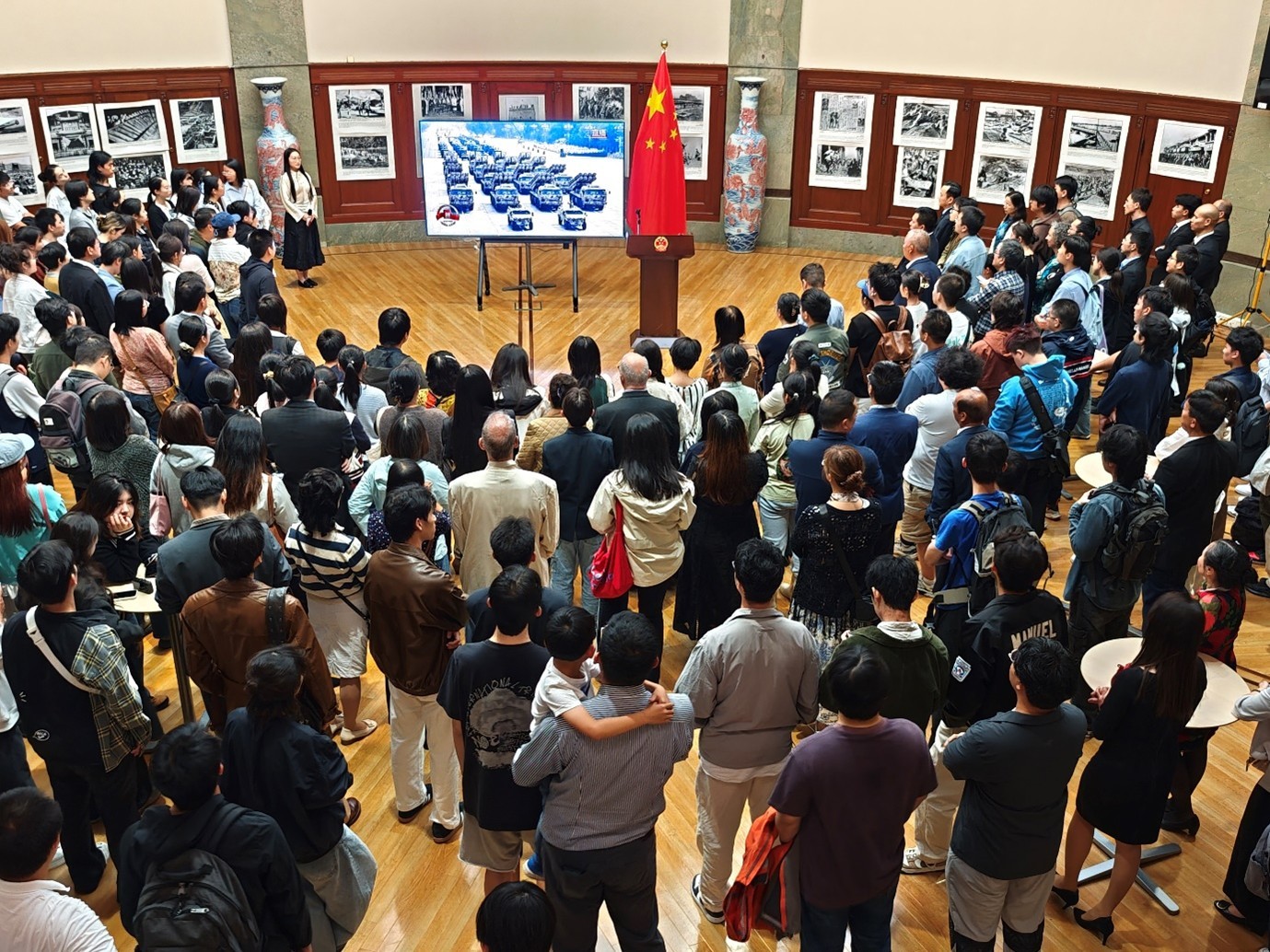 隨后,來(lái)賓們集體觀看圖片展,回顧日本法西斯侵華的累累罪行,以及這場(chǎng)全民族眾志成城、艱苦卓絕的偉大勝利。大家并共同觀看了“9·3”閱兵精彩片段,對(duì)剛毅威武的人民之師,集中亮相的新武器新裝備贊不絕口,表示新時(shí)代人民軍隊(duì)完全有信心、有能力維護(hù)國(guó)家獨(dú)立自由,維護(hù)世界和平安寧。