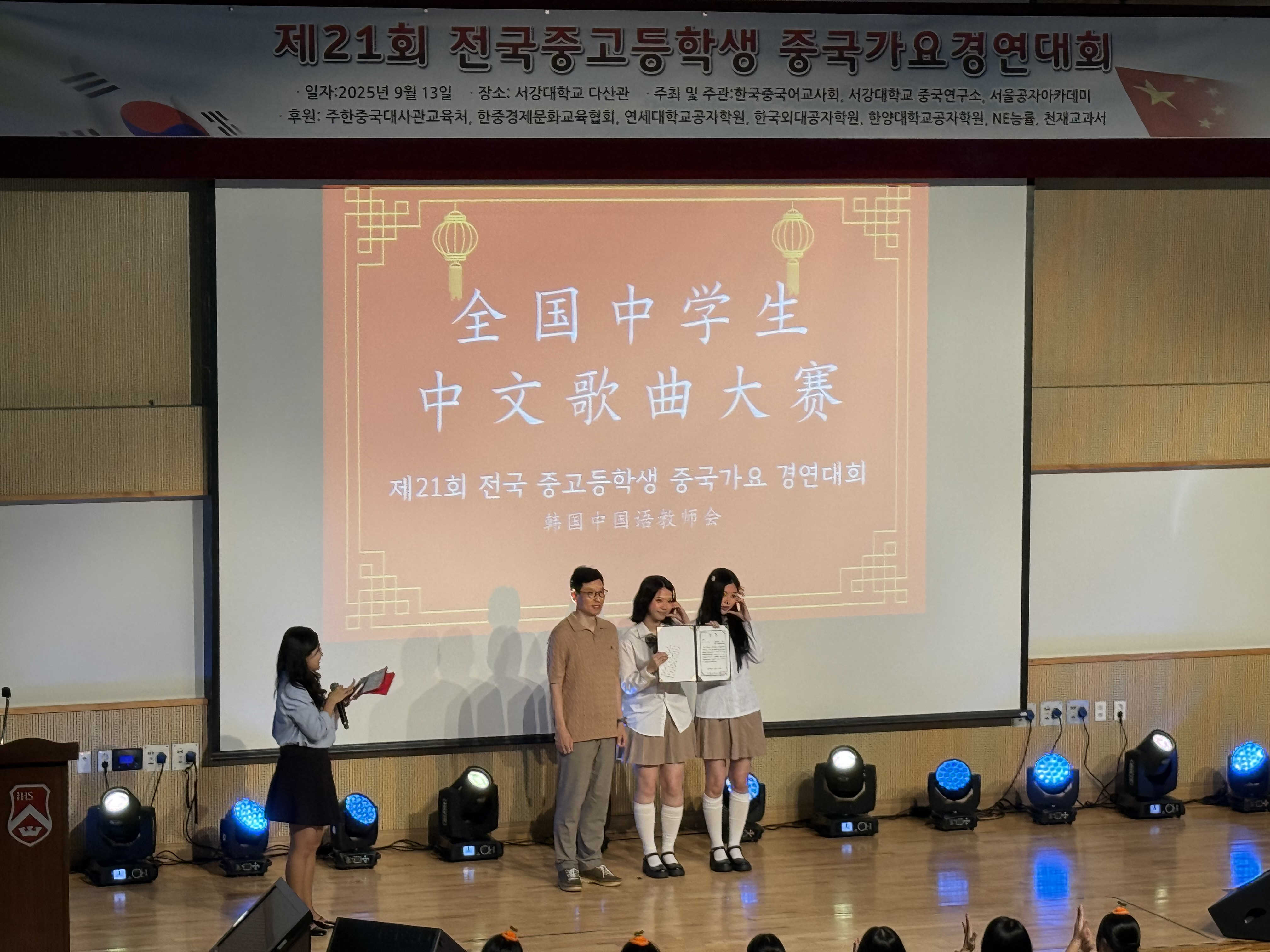 人民網(wǎng)首爾9月14日電 (記者莽九晨)13日,由韓國中國語教師會(huì)、首爾孔子學(xué)院和西江大學(xué)中國研究所共同舉辦的“第21屆全國中學(xué)生中文歌曲大賽”在韓國西江大學(xué)舉行。