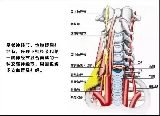 星狀神經(jīng)節(jié)是交感神經(jīng)系統(tǒng)的一部分,位于頸部前方,是頭面部、上肢及部分內(nèi)臟的交感神經(jīng)中轉站。一旦它“過度興奮”,會導致血管收縮、神經(jīng)敏感、情緒異常、內(nèi)耳供血不足,繼而出現(xiàn)頭痛、面痛、耳鳴、失眠,可能誘發(fā)眩暈、梅尼埃病等癥狀。