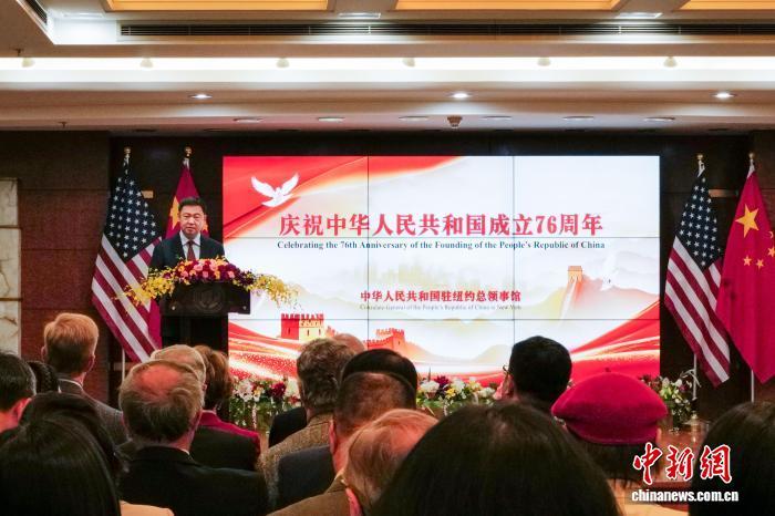 當?shù)貢r間9月17日,中國駐紐約總領(lǐng)館舉行慶祝中華人民共和國成立76周年招待會。 王帆 攝