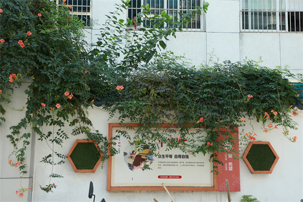 園藝小景與創(chuàng)意墻繪相映成趣。 通訊員供圖