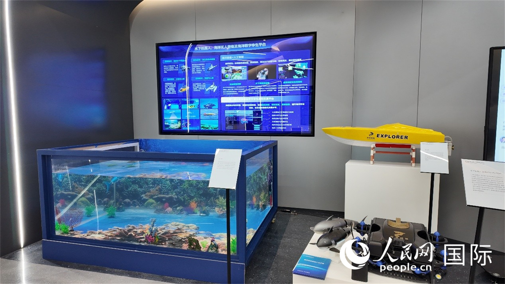 水下機器人、海洋無人裝備及海洋數(shù)字孿生平臺。人民網(wǎng) 張醴泉攝