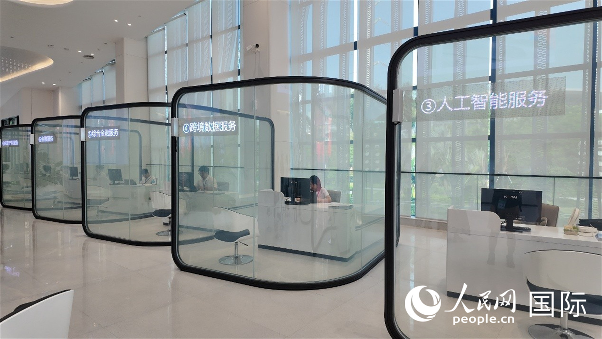 南A中心服務大廳設10個智慧窗口,打造“一站式”國際人工智能產(chǎn)業(yè)服務平臺。人民網(wǎng) 張醴泉攝