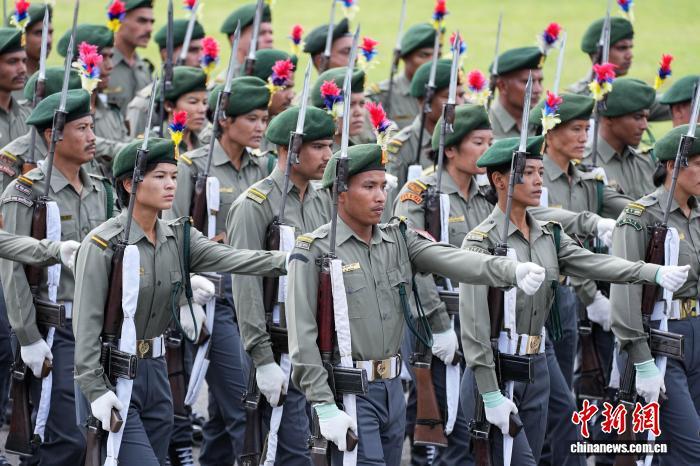 9月19日,尼泊爾臨時(shí)政府舉行憲法日暨國(guó)慶日慶?;顒?dòng),紀(jì)念尼泊爾現(xiàn)行憲法頒布施行十周年。圖為尼泊爾武警部隊(duì)接受檢閱。中新社記者 崔楠 攝