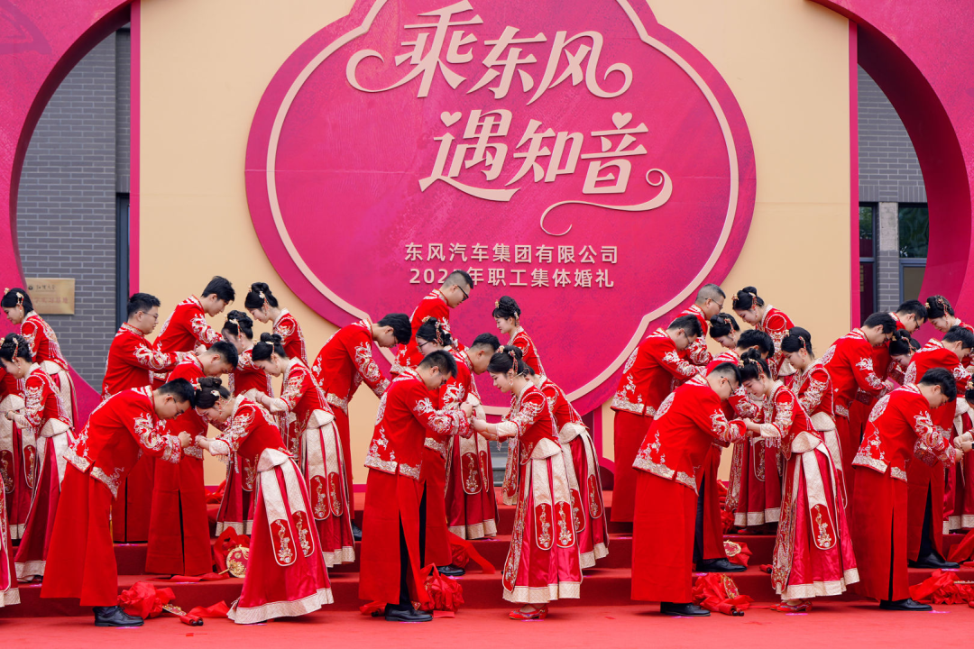 9月20日,東風汽車2025年職工集體婚禮在武漢經開區(qū)湯湖文化宮舉行。40對新人在親友和嘉賓的見證下,攜手穿越“幸福之門”,共同步入婚姻的殿堂,開啟人生新篇章。