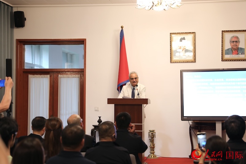 尼泊爾駐華大使克里希納·普拉薩德·奧利致辭。人民網(wǎng)記者 賈文婷攝