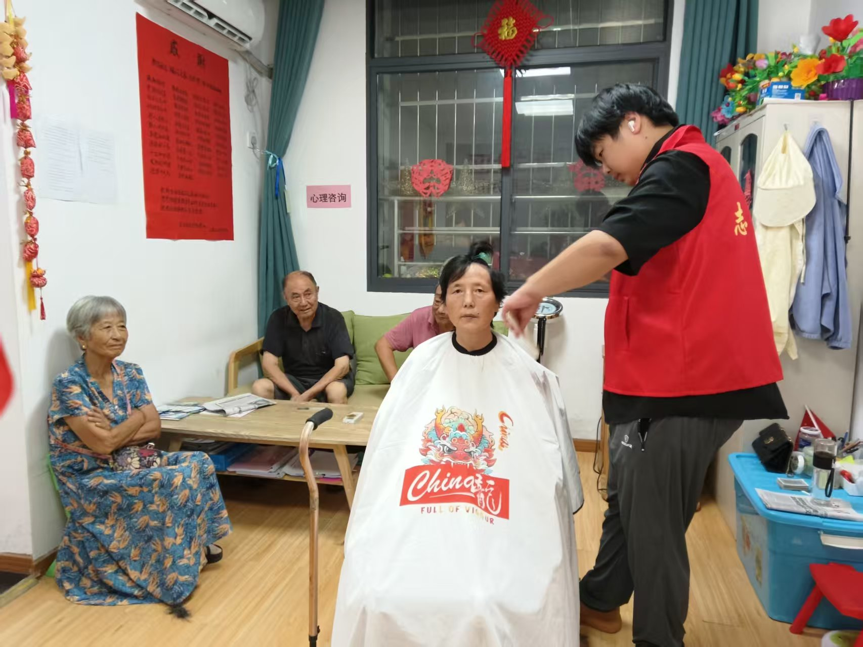 新蘭社區(qū)愛(ài)心義剪現(xiàn)場(chǎng)。通訊員供圖