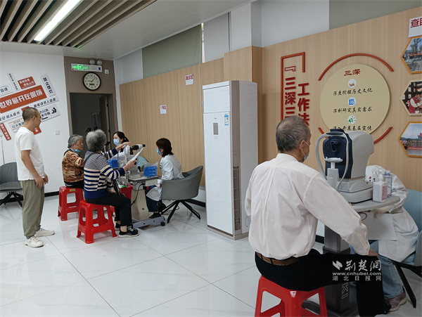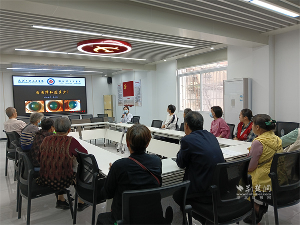 活動當天,社區(qū)黨群服務(wù)中心設(shè)立了臨時義診服務(wù)點。武漢大學(xué)人民醫(yī)院眼科醫(yī)護團隊為居民提供了包括視力檢查、眼壓測量、??漆t(yī)生問診等一系列專業(yè)診療服務(wù)。社區(qū)基層黨員和志愿者積極配合,有序引導(dǎo)居民排隊、協(xié)助信息登記、耐心解答疑問,保障了現(xiàn)場流程順暢、秩序井然。