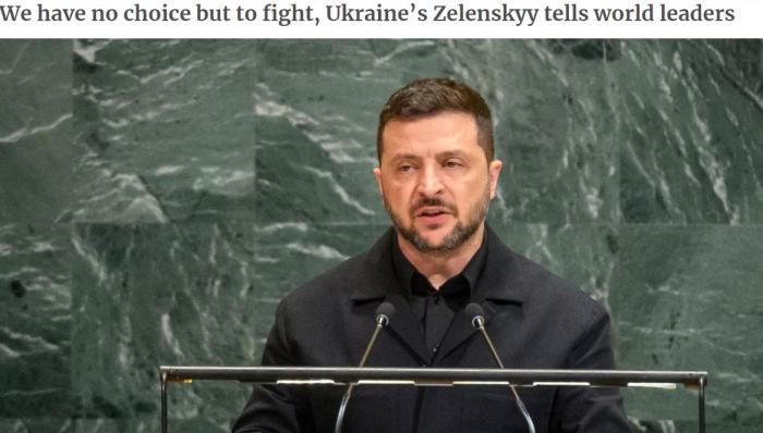 據(jù)聯(lián)合國(guó)官網(wǎng)發(fā)布的畫面,澤連斯基演講時(shí)換下了往常的套頭衫,選擇了更正式的黑色服裝。