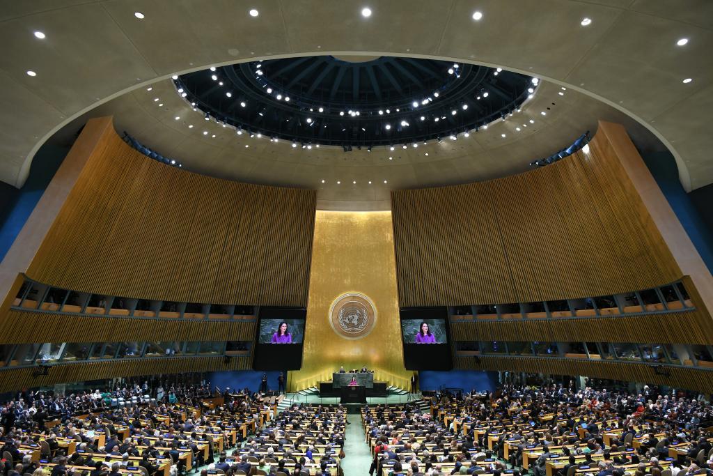 9月23日,在位于紐約的聯(lián)合國(guó)總部,第80屆聯(lián)大主席貝爾伯克在第80屆聯(lián)合國(guó)大會(huì)一般性辯論開(kāi)幕式上發(fā)言。新華社記者李睿攝
