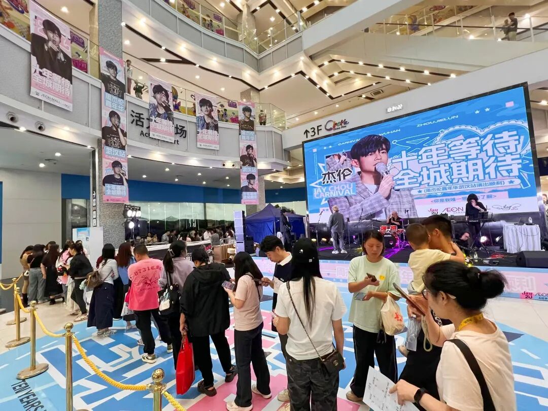 9月26日—28日,周杰倫主題音樂會(huì)嘉年華活動(dòng)在永旺夢樂城武漢經(jīng)開購物中心連續(xù)三天上演?!敖苊浴眰冋具M(jìn)專屬打卡框,與“杰倫”同框合影,參加粉絲互動(dòng)活動(dòng),領(lǐng)取應(yīng)援周邊,沉浸式體驗(yàn)“倫”式浪漫。永旺夢樂城武漢經(jīng)開購物中心相關(guān)負(fù)責(zé)人告訴記者,9月27日,永旺夢樂城接待市民近10萬人,銷售額超800萬元。