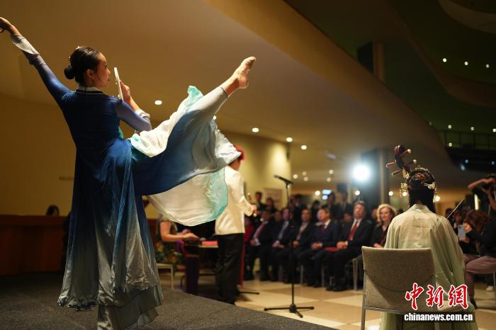 當?shù)貢r間10月13日,2025“天涯共此時—中秋詩會”在紐約聯(lián)合國總部舉辦。圖為舞蹈《月影流光》。中新網(wǎng)記者 廖攀 攝