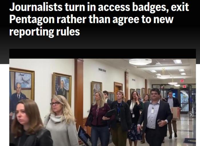 美國(guó)廣播公司(ABC)報(bào)道稱,當(dāng)?shù)貢r(shí)間15日下午4時(shí),隨著美國(guó)國(guó)防部設(shè)定的最后期限臨近,五角大樓的走廊里堆滿了文件箱,大約40到50名記者交出了證件后一起離開。