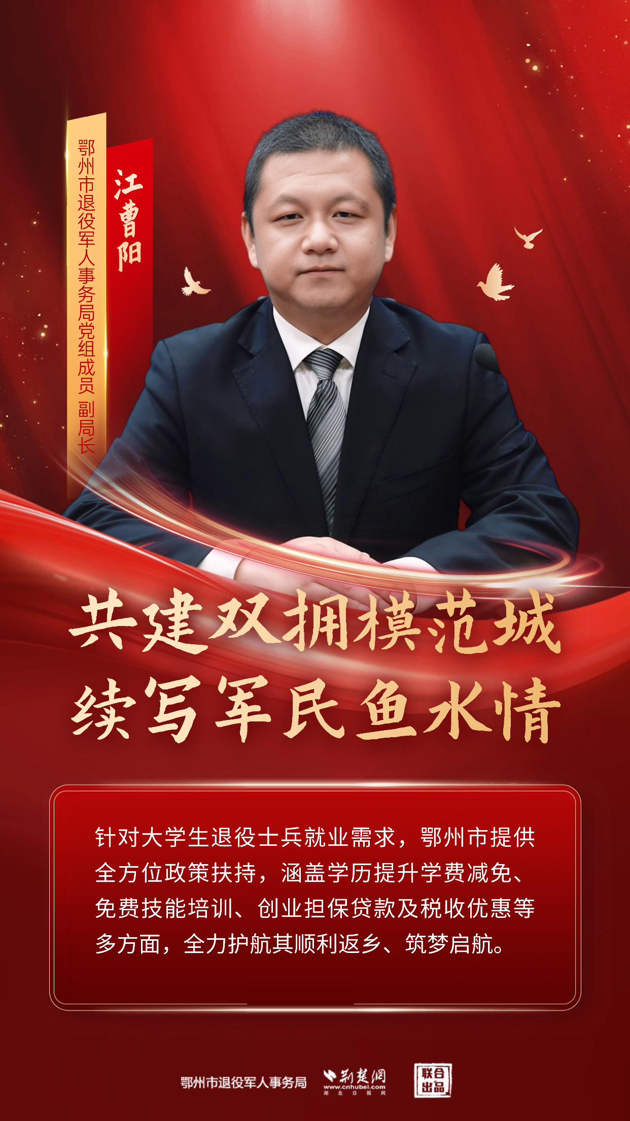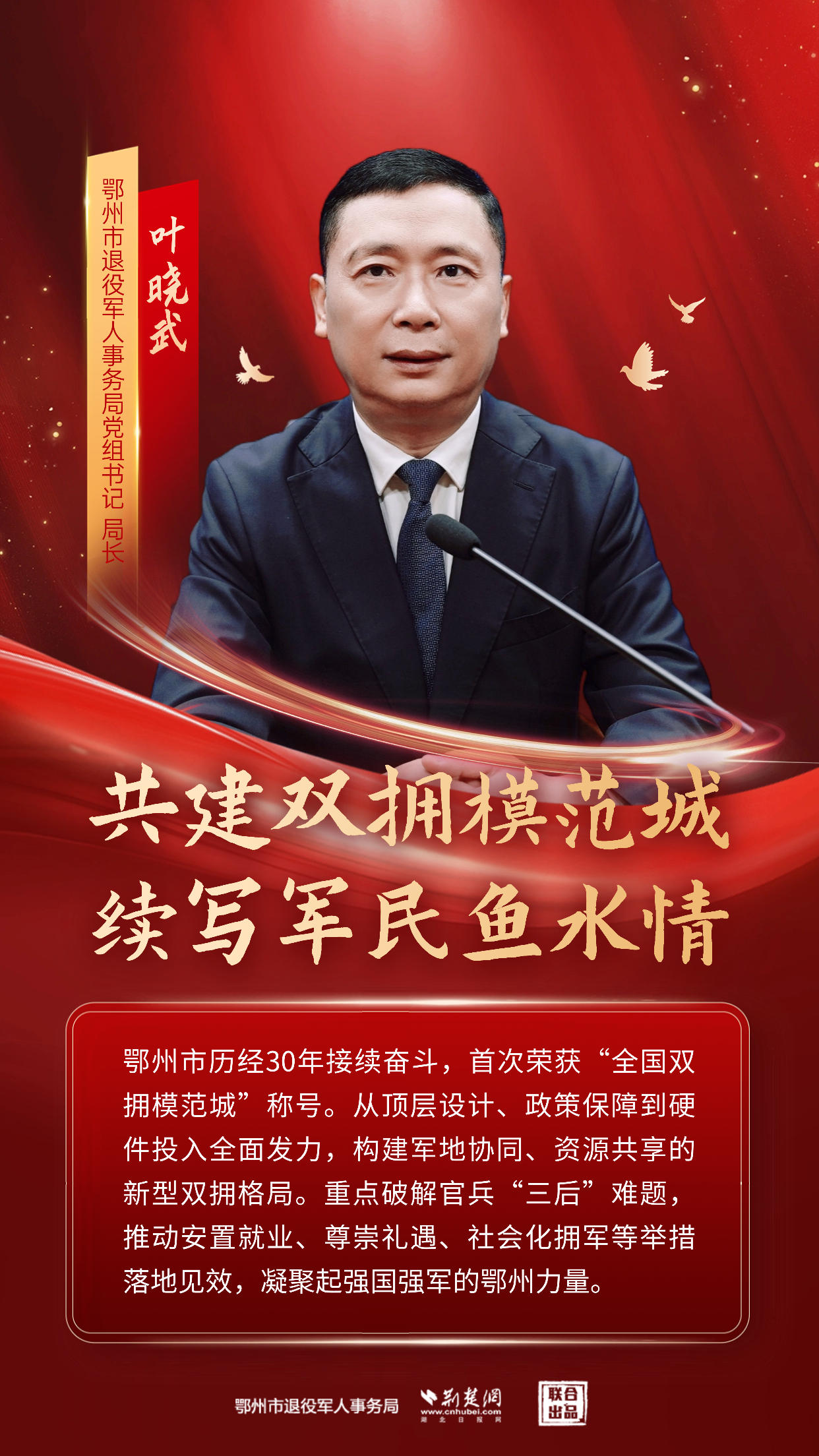荊楚網(wǎng)(湖北日報網(wǎng))訊(記者 姜夢瑤 通訊員 胡彥)10月15日,鄂州市召開新聞發(fā)布會,正式通報鄂州市成功獲評“全國雙擁模范城”有關情況。這項我國雙擁工作領域的最高榮譽,標志著該市在新時代雙擁工作中邁上了嶄新臺階。