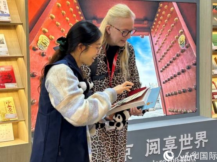 德國(guó)出版從業(yè)者代吉拉在北京圖書展區(qū)。人民網(wǎng)記者 徐馨攝