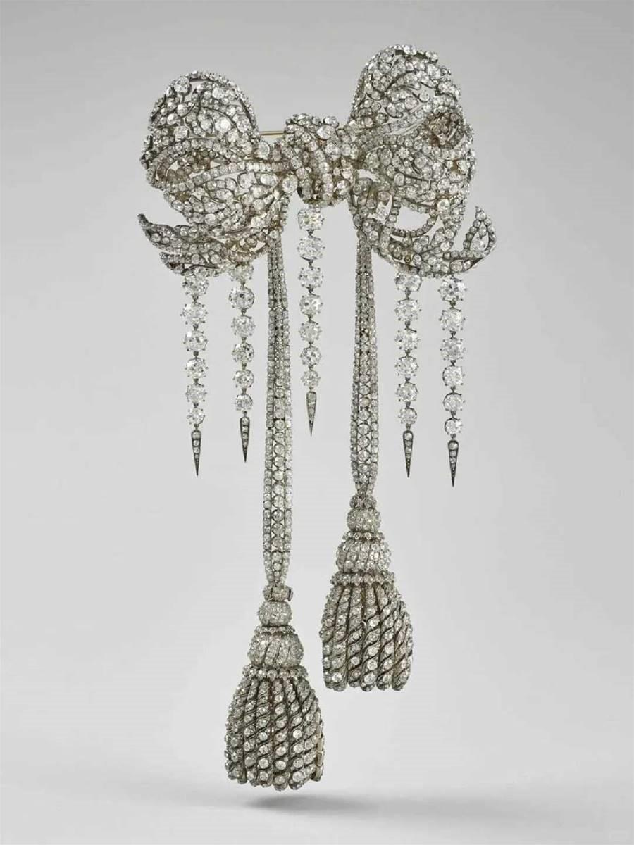 旅法博物館講解員曹旭文向總臺記者介紹,這些珍寶原陳列于阿波羅畫廊的“王冠鉆石”展區(qū)——盧浮宮最具象征意義的空間之一。該展區(qū)于2019年重新布展,專門設(shè)置了高規(guī)格展柜以集中展示法國王室珠寶?!坝绕涫菤W也妮皇后的鉆石蝴蝶結(jié)胸針,代表了19世紀法國珠寶工藝的巔峰,2008年才從拍賣市場重金購回,如今再度流失,令人痛心?!?/p>
