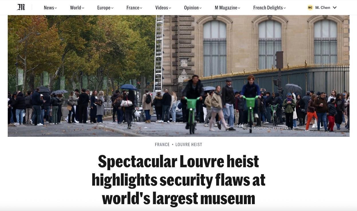 事實上,盧浮宮此前已收到巴黎警方提交的安保評估報告,館方也正研究推進新一輪安防升級。然而,措施尚未落地,劫案就已發(fā)生。