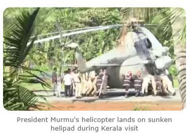 中新網(wǎng)10月22日電 據(jù)《印度時(shí)報(bào)》報(bào)道,印度總統(tǒng)穆爾穆于當(dāng)?shù)貢r(shí)間21日開啟對(duì)印度南部喀拉拉邦為期四天的正式訪問。22日,其乘坐的直升機(jī)在降落至當(dāng)?shù)匾惑w育場(chǎng)的直升機(jī)坪時(shí)發(fā)生意外,部分地面在機(jī)輪觸地后突然下陷。