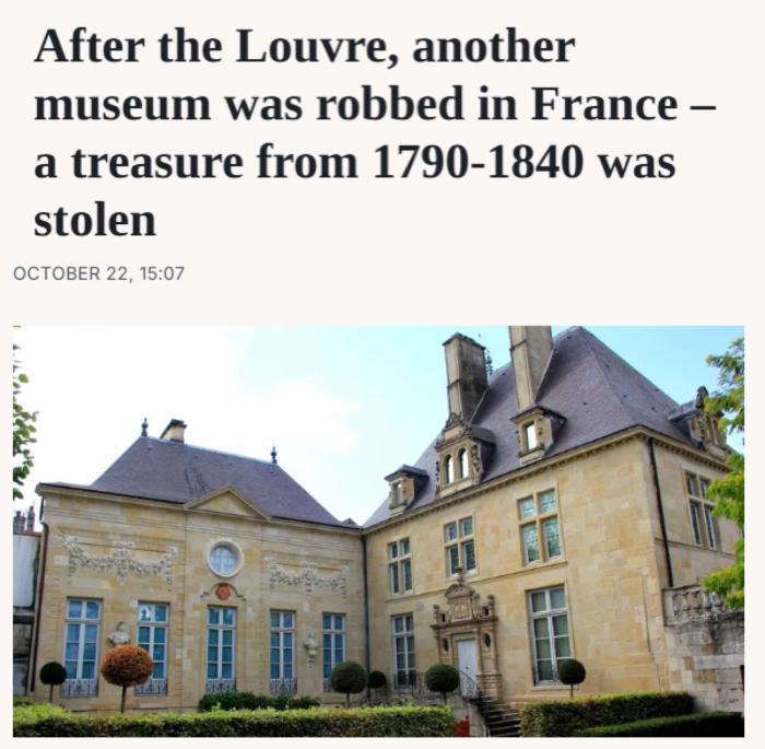 中新網(wǎng)10月23日電 據(jù)外媒當(dāng)?shù)貢r(shí)間22日報(bào)道,在巴黎盧浮宮博物館發(fā)生搶劫案后不久,法國另一家小型博物館失竊,約2000枚金幣和銀幣被盜。事發(fā)后該博物館暫時(shí)關(guān)閉。