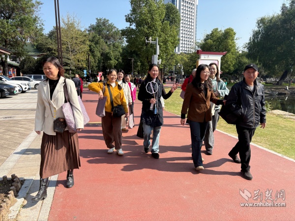 徒步過程中,工作人員結(jié)合園內(nèi)景觀,為老人們講解了紫陽湖自宋代以來的文化淵源及與辛亥革命的深厚歷史關(guān)聯(lián),讓老年居民在漫步賞景的同時,感受本土人文底蘊。