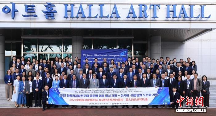 10月24日,2025中韓經(jīng)濟(jì)發(fā)展論壇在韓國濟(jì)州開幕。圖為論壇與會(huì)嘉賓合影。韓國京畿大學(xué)韓中經(jīng)濟(jì)發(fā)展研究所 供圖