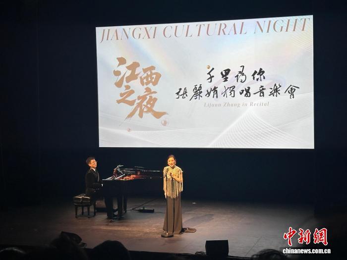江西籍青年女高音歌唱家、上饒師范學(xué)院聲樂(lè)副教授張麗娟以一場(chǎng)飽含鄉(xiāng)情的獨(dú)唱音樂(lè)會(huì),為“江西之夜”揭開(kāi)序幕?!队成郊t》《上饒紅》《千里尋你》等江西經(jīng)典民歌引發(fā)當(dāng)?shù)貎S胞共鳴。張麗娟表示,希望通過(guò)音樂(lè),讓世界聽(tīng)見(jiàn)江西的聲音。
