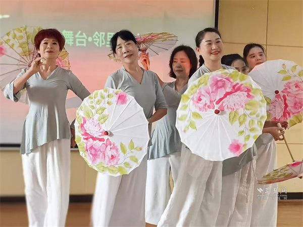 活動(dòng)當(dāng)晚,舞臺(tái)燈光璀璨。才藝秀環(huán)節(jié),東方紅管樂(lè)團(tuán)以激昂的《在希望的田野上》和深情的《我和我的祖國(guó)》開(kāi)場(chǎng),瞬間點(diǎn)燃全場(chǎng)熱情。古韻舞團(tuán)的傘舞《紅鸞》,將古典柔美與紅色意境完美融合;愛(ài)麗舞蹈隊(duì)的《江山》,演繹出深沉家國(guó)情懷。居民徐山榮獨(dú)唱《紅日日升在東方》,歌聲嘹亮,飽含對(duì)祖國(guó)的熱愛(ài)。