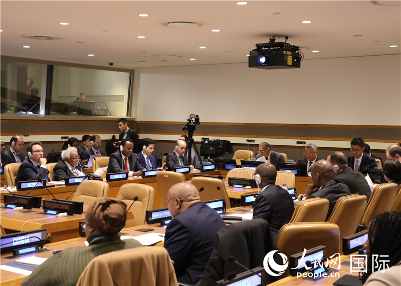 中國(guó)常駐聯(lián)合國(guó)代表傅聰主持會(huì)議并作主旨發(fā)言。人民網(wǎng)記者 李志偉攝