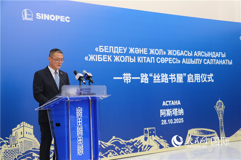 人民網(wǎng)阿斯塔納10月28日電 (記者李強(qiáng))10月28日,由中國(guó)石油化工集團(tuán)與哈薩克斯坦歐亞大學(xué)共同主辦的“絲路書(shū)屋”啟用儀式于哈薩克斯坦歐亞大學(xué)舉行。中國(guó)駐哈薩克斯坦使館公使銜參贊蘇予、歐亞大學(xué)校長(zhǎng)埃爾蘭·西德科夫、中石化駐哈機(jī)構(gòu)總代表曾凡禮出席儀式并致辭。