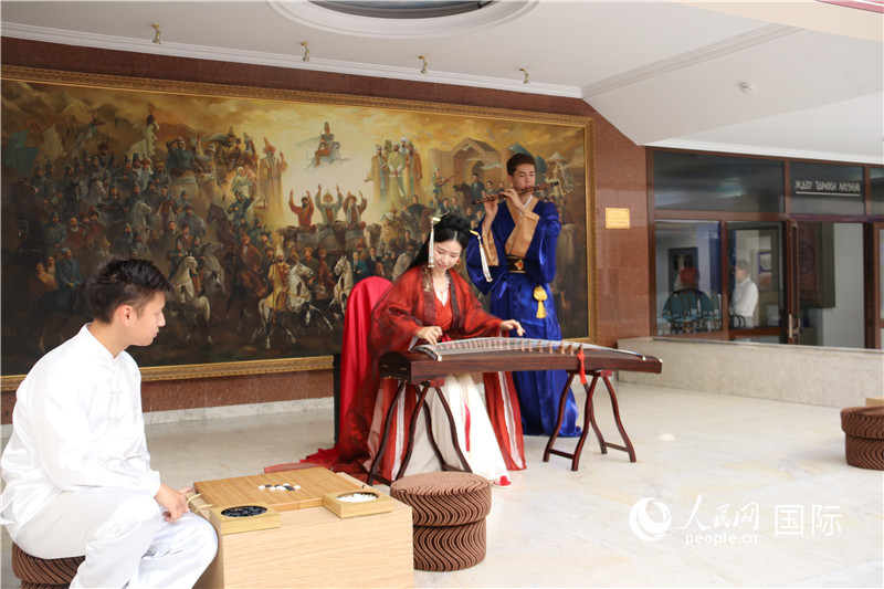 由中國(guó)石化向“絲路書(shū)屋”贈(zèng)與的500余冊(cè)圖書(shū),涵蓋了中國(guó)經(jīng)濟(jì)、社會(huì)、歷史、文化等,歐亞大學(xué)校長(zhǎng)及在校師生現(xiàn)場(chǎng)翻閱中國(guó)圖書(shū)并體驗(yàn)中國(guó)文化。