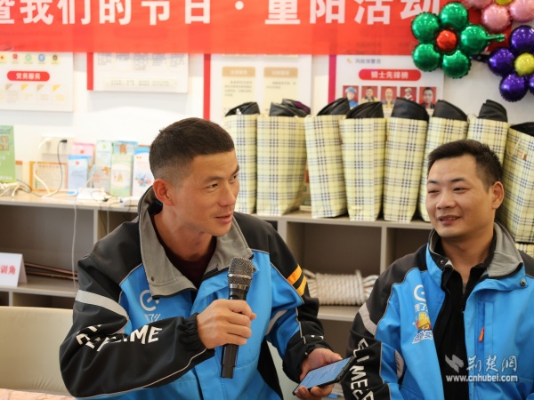 為傳承敬老溫情,工作人員為騎手們準(zhǔn)備了精美祝福賀卡,鼓勵他們將對老人們健康長壽、幸福安康的祝愿傾注筆端。在街道發(fā)出敬老志愿服務(wù)倡議后,8名新就業(yè)群體現(xiàn)場響應(yīng),加入“黃鶴樓街黃小‘蜂’敬老服務(wù)隊”,莊嚴(yán)宣讀入隊誓詞。