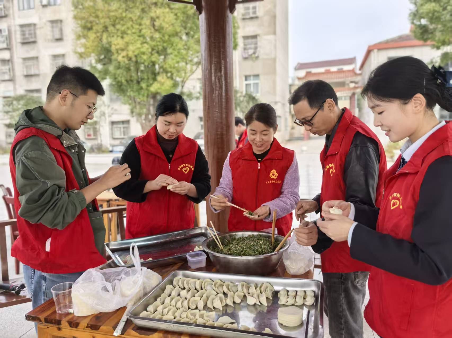 更溫馨的一幕出現(xiàn)在福利院六角亭內,志愿者們圍成一圈共包餃子,大家一邊切磋手藝,一邊嘮嘮家常,現(xiàn)場歡聲笑語不絕于耳?;顒悠陂g,志愿者們還向老人們贈送了米、面、油等生活物資,將社會各界的關懷切實送到老人心坎上。