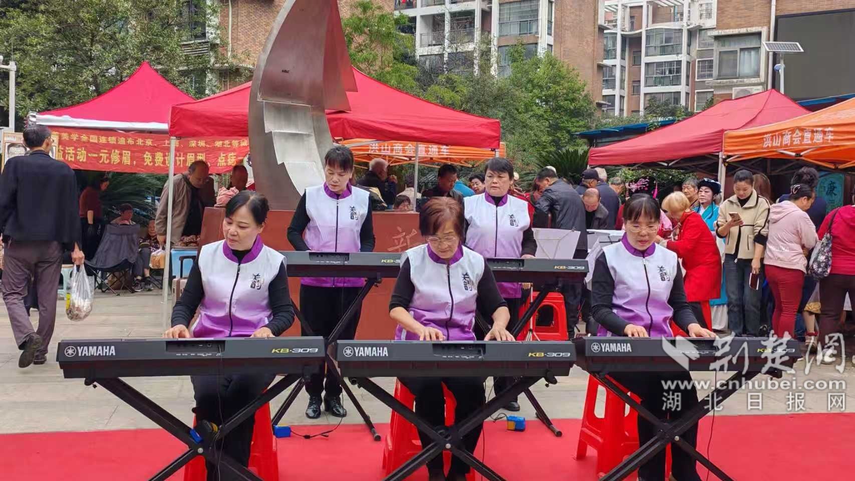 隨后,文藝匯演精彩啟幕。社區(qū)黨員、文藝愛好者與居家養(yǎng)老服務(wù)中心志愿者聯(lián)袂獻藝,帶來了一場精彩紛呈的視聽盛宴:昂揚的大合唱唱出了老人們對黨的感恩與對生活的熱愛;節(jié)奏明快的舞蹈展現(xiàn)出蓬勃向上的精神風(fēng)貌;電子琴齊奏音色悠揚、婉轉(zhuǎn)悅耳;經(jīng)典黃梅戲選段韻味悠長,勾起老一輩的青春回憶;輕快靈動的口琴演奏贏得臺下陣陣喝彩。表演者全心投入,老人們看得津津有味,不時跟著哼唱、拍手叫好,歡聲笑語交織成最動人的節(jié)日樂章。