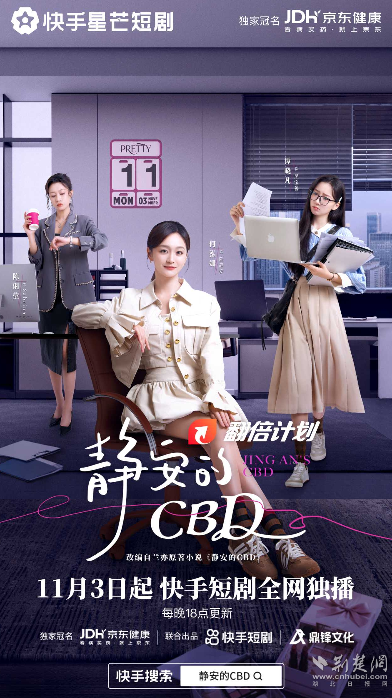 荊楚網(wǎng)(湖北日報網(wǎng))訊(通訊員 恩正)畫最愛的女神妝,走最颯的職場路。近日,都市職場題材短劇《靜安的CBD》宣布定檔,將于11月3日在快手短劇進行全網(wǎng)獨播。據(jù)悉,該劇由京東健康獨家冠名,快手與鼎鋒文化共同出品,孔令飛傾情執(zhí)導,何泓姍領(lǐng)銜主演,將用22集篇幅描繪跨越代際的女性職場群像,呈現(xiàn)Z世代女孩的青春奮斗故事。