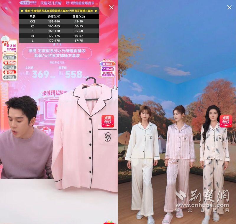 內(nèi)衣與家居服成為今年大促李佳琦直播間增長(zhǎng)最快的細(xì)分服飾品類,以維秘為例,首輪上架的6款單品中有3款迅速售罄,品牌整體銷售增長(zhǎng)超過200%,其中天絲棉柔睡衣與輕舒絨睡衣成為大促“現(xiàn)象級(jí)爆款”。