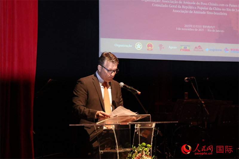 巴西—中國友好協(xié)會主席恩里克·達諾布雷加在活動中致辭。人民網(wǎng)記者 時元皓攝