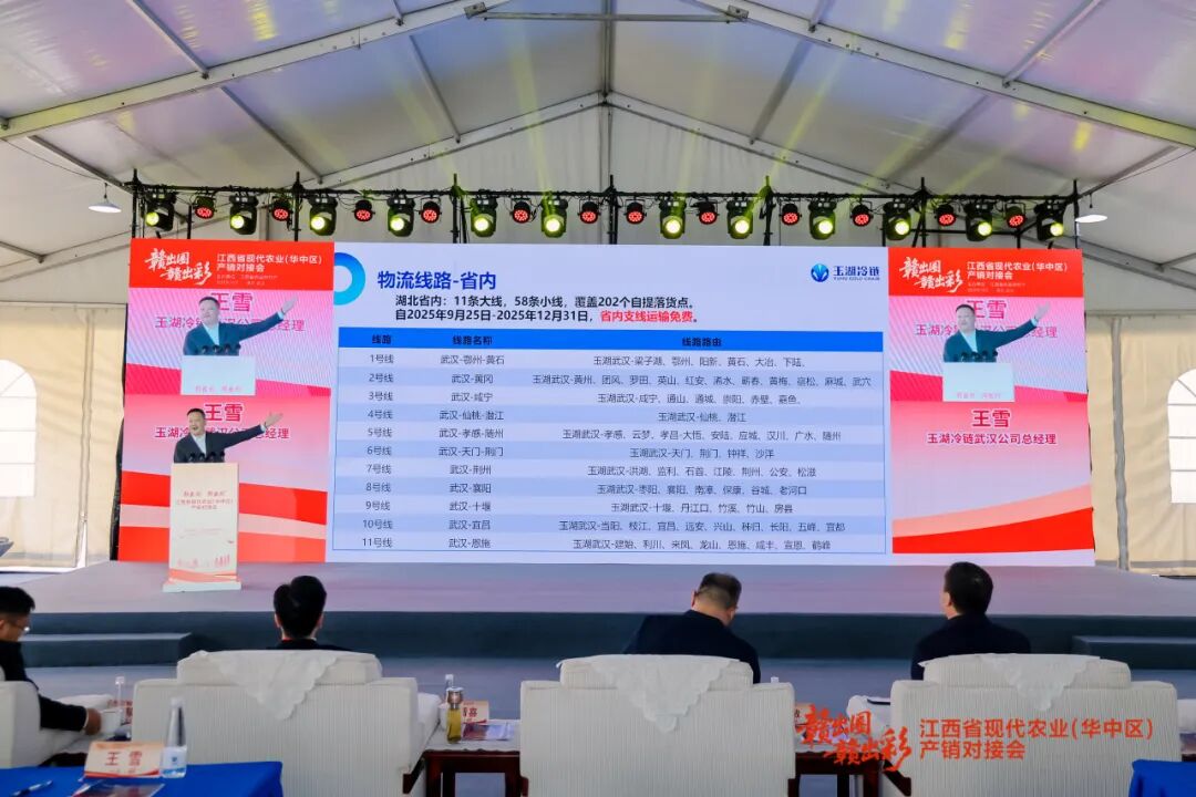 對(duì)接會(huì)當(dāng)天,玉湖冷鏈武漢公司負(fù)責(zé)人介紹了依托黃陂基地構(gòu)建的綜合服務(wù)體系及專項(xiàng)物流優(yōu)惠政策。該體系以“降本增效”為核心,為贛鄂兩地食材流通提供從產(chǎn)地倉儲(chǔ)、干線運(yùn)輸?shù)浇K端配送的一體化解決方案,助力江西企業(yè)實(shí)現(xiàn)“產(chǎn)地直供+華中直銷”的暢通循環(huán)。