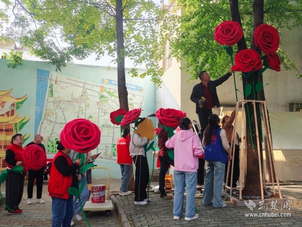 這棵“愛(ài)之樹(shù)”是街道殘聯(lián)聯(lián)合西廠口社區(qū)開(kāi)展的“杏運(yùn)相伴,玫好家園”殘健融合公共藝術(shù)共創(chuàng)活動(dòng)的成果,轄區(qū)陽(yáng)光家園學(xué)員、助殘志愿者、居民代表和社區(qū)工作者共同參與,以親手制作的巨型銀杏葉與玫瑰花裝點(diǎn)社區(qū)空間,傳遞“黃鶴樓下是我家”的溫暖。