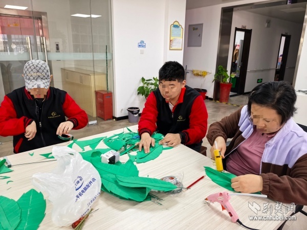 在為期兩周的創(chuàng)作中,陽(yáng)光家園學(xué)員在志愿者的陪伴下,從設(shè)計(jì)畫(huà)圖、精準(zhǔn)剪裁到立體塑形、精細(xì)組裝,系統(tǒng)學(xué)習(xí)并逐步掌握了銀杏葉與玫瑰花的制作技巧?!暗谝淮螀⑴c制作這么大的藝術(shù)作品,沒(méi)想到我也能創(chuàng)造出這么美的作品!”一位學(xué)員自豪地展示成果。創(chuàng)作過(guò)程中,殘健伙伴分工協(xié)作、各展所長(zhǎng),在默契配合中締結(jié)了深厚情誼。